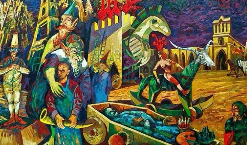 Ressam Hakan Daloğlu’nun, Kıbrıs Modern Sanat Müzesi Koleksiyonu’ndaki resmi (210x600cm. Tuval üzerine Yağlıboya)